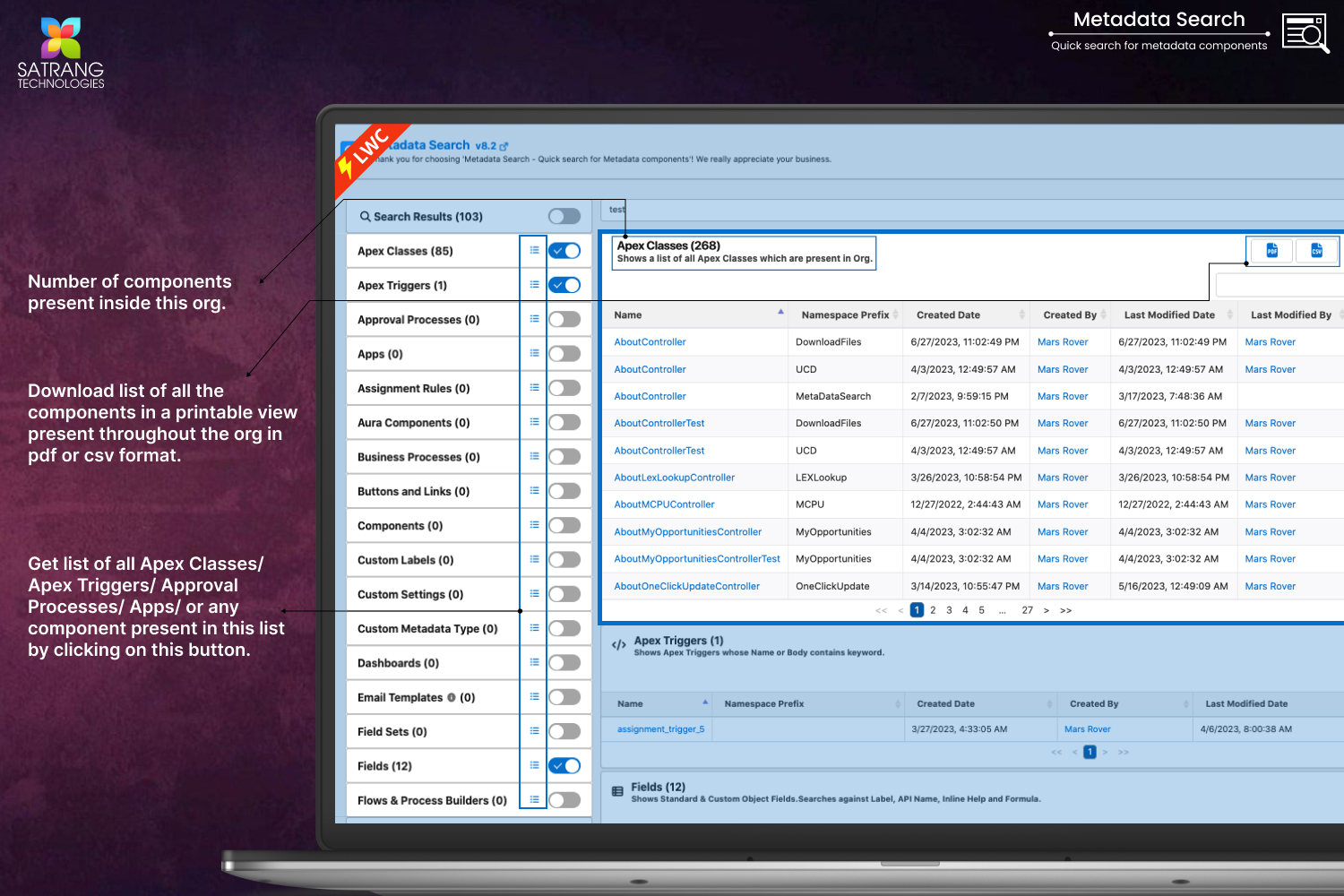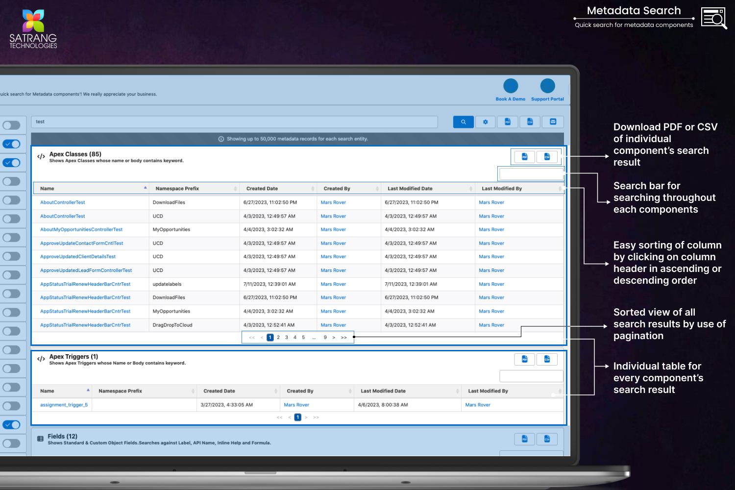 However, Metadata Search focuses on giving the administrators and developers the capability to extensively search the configuration and customization components with a similar search experience as Salesforce setup search. Also, you can see the entire list of the components and can download them in CSV and Excel sheet format. If you want to send a searched results by email to your customer you can directly send it on the same page