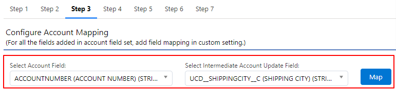 We have to select the Account field "Select Account Field" drop-down and Account Update Field from the "Select Intermediate Account Update Field" drop-down on STEP-3 on the About Update Client Details Page and then click on the Map button.