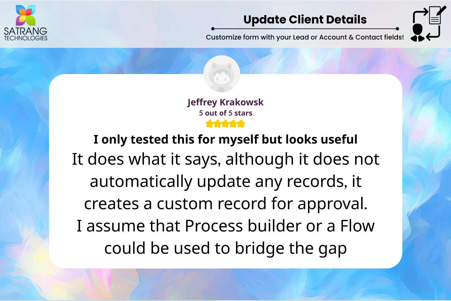 It does what it says, although it does not automatically update any records, it creates a custom record for approval.