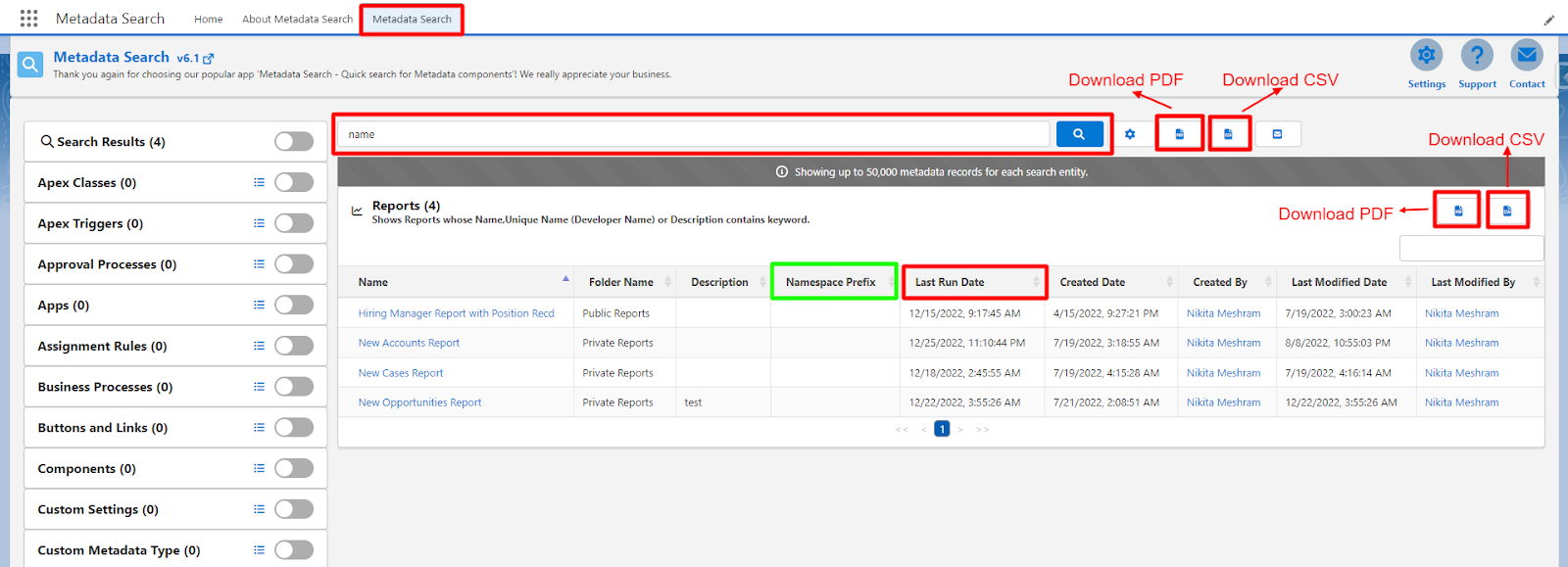 - Go to Metadata Search App