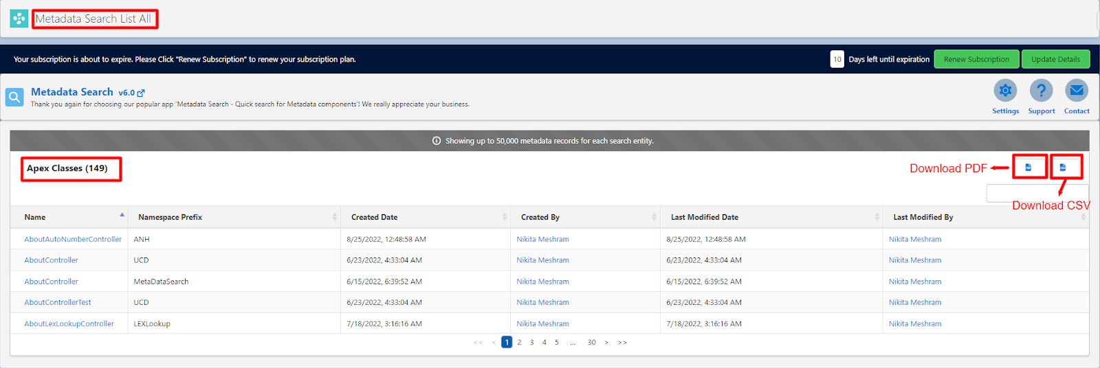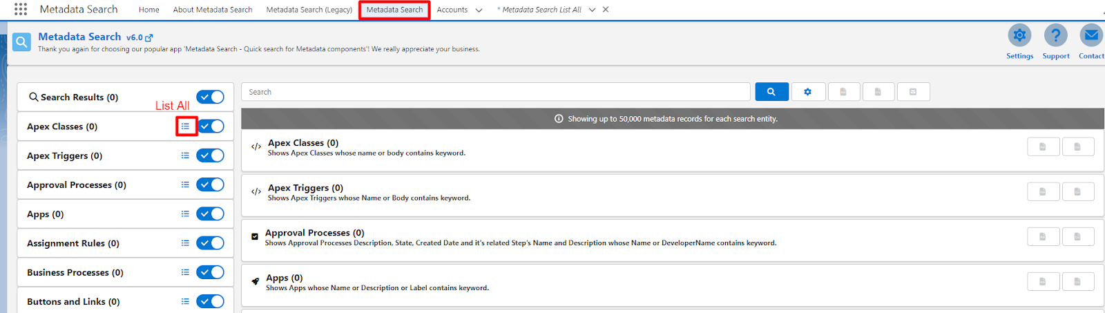 Using List All feature, user can fetch and download all the metadata records of the components.