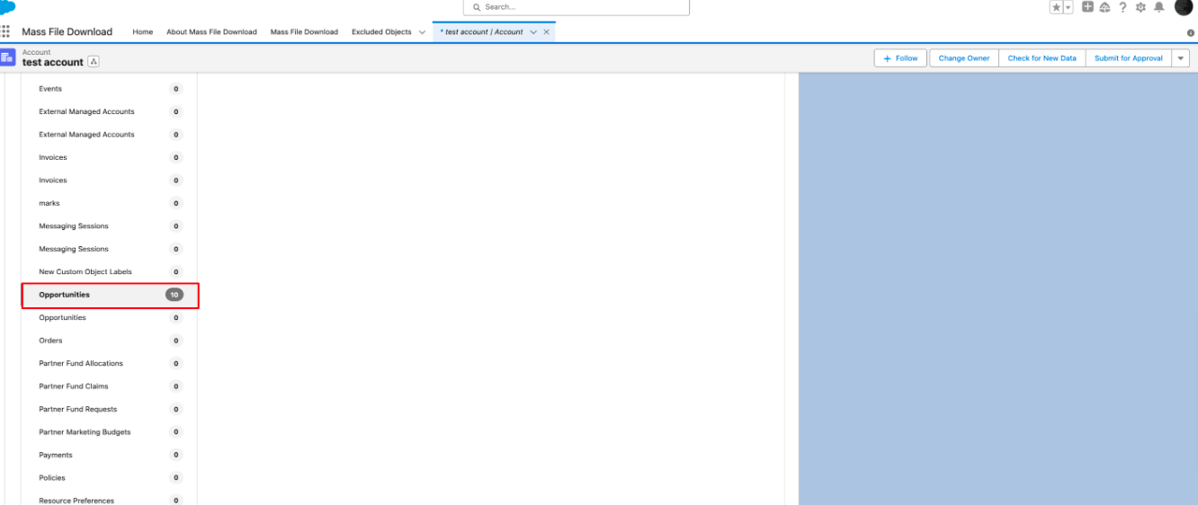 4. Use Mass File Download Related Files Lightning Component:- To download files related to Opportunities, navigate to the Opportunity object.