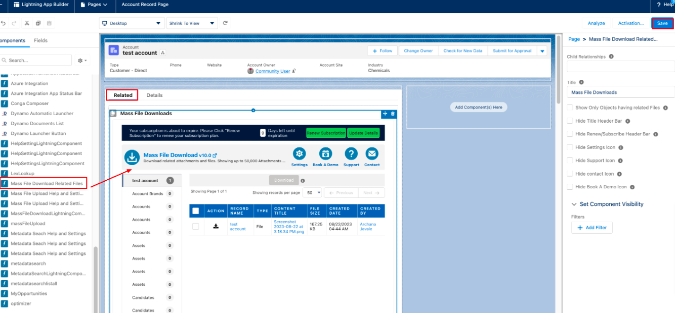 3. Adding Mass File Download Component to Account Record: