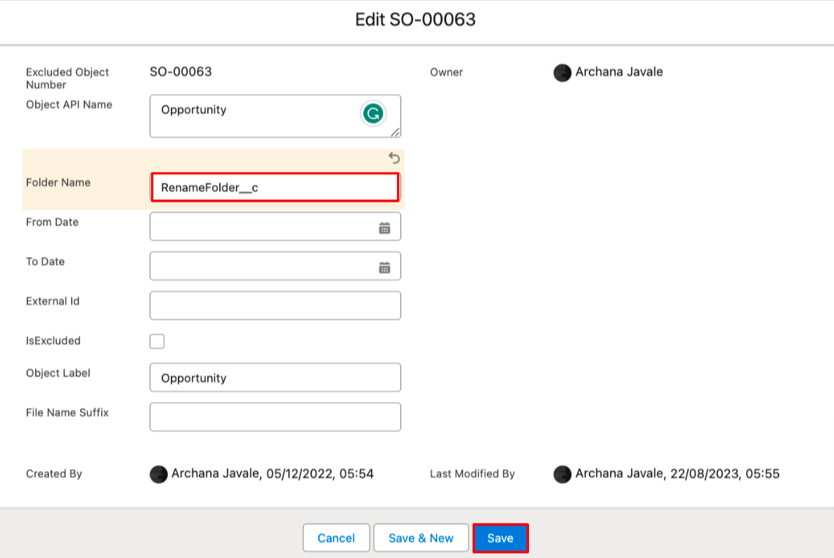 - In the Folder Name field, add the API name of the formula field created earlier. Then, click Save.