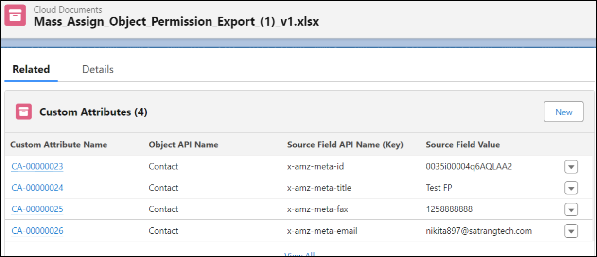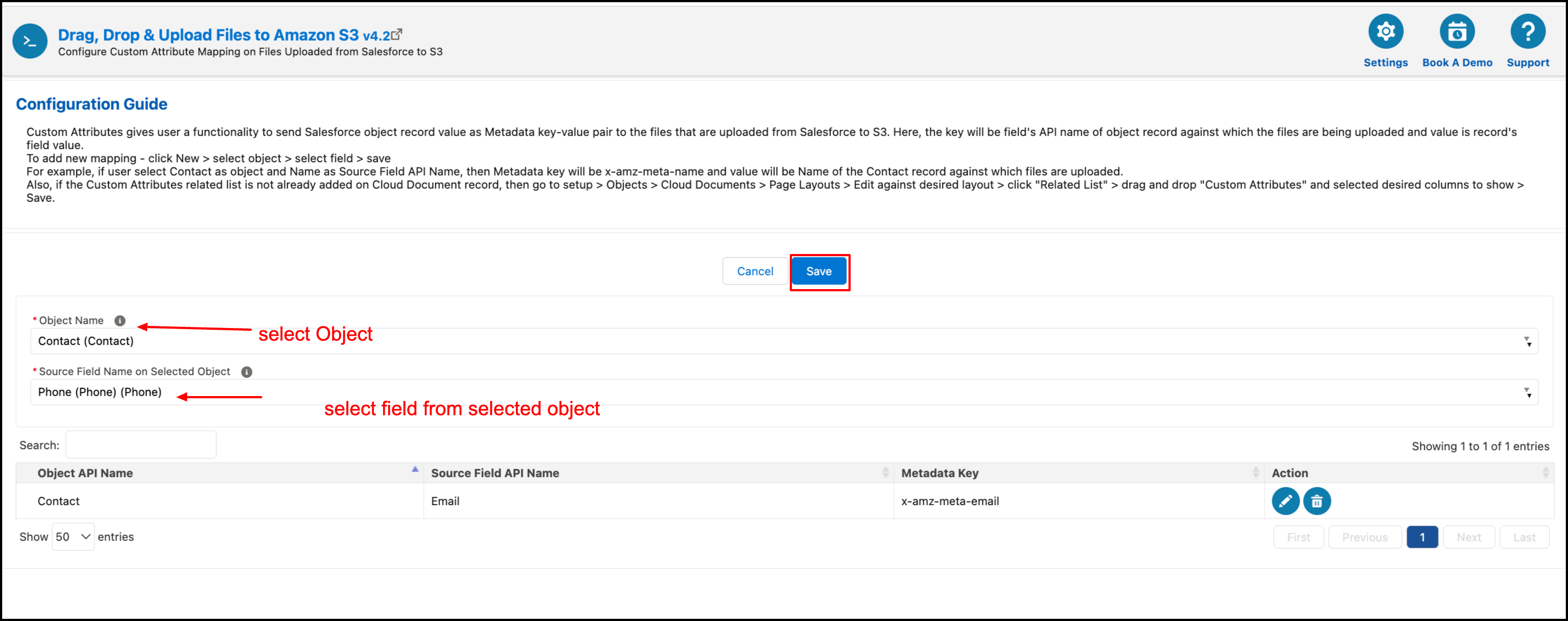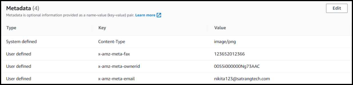 Example - - When the user uploads files from salesforce, the fields values based on this custom attribute mapping will sent to S3 object to set the metadata.