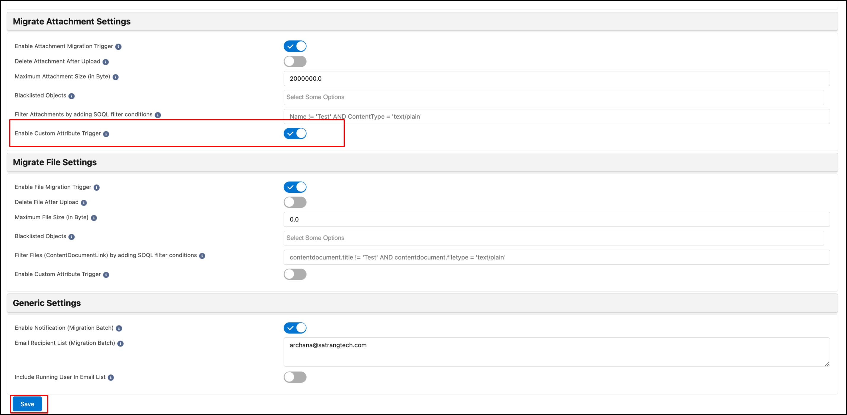 - On that screen, enable "Custom Attribute Trigger" in the settings and click on "Save."