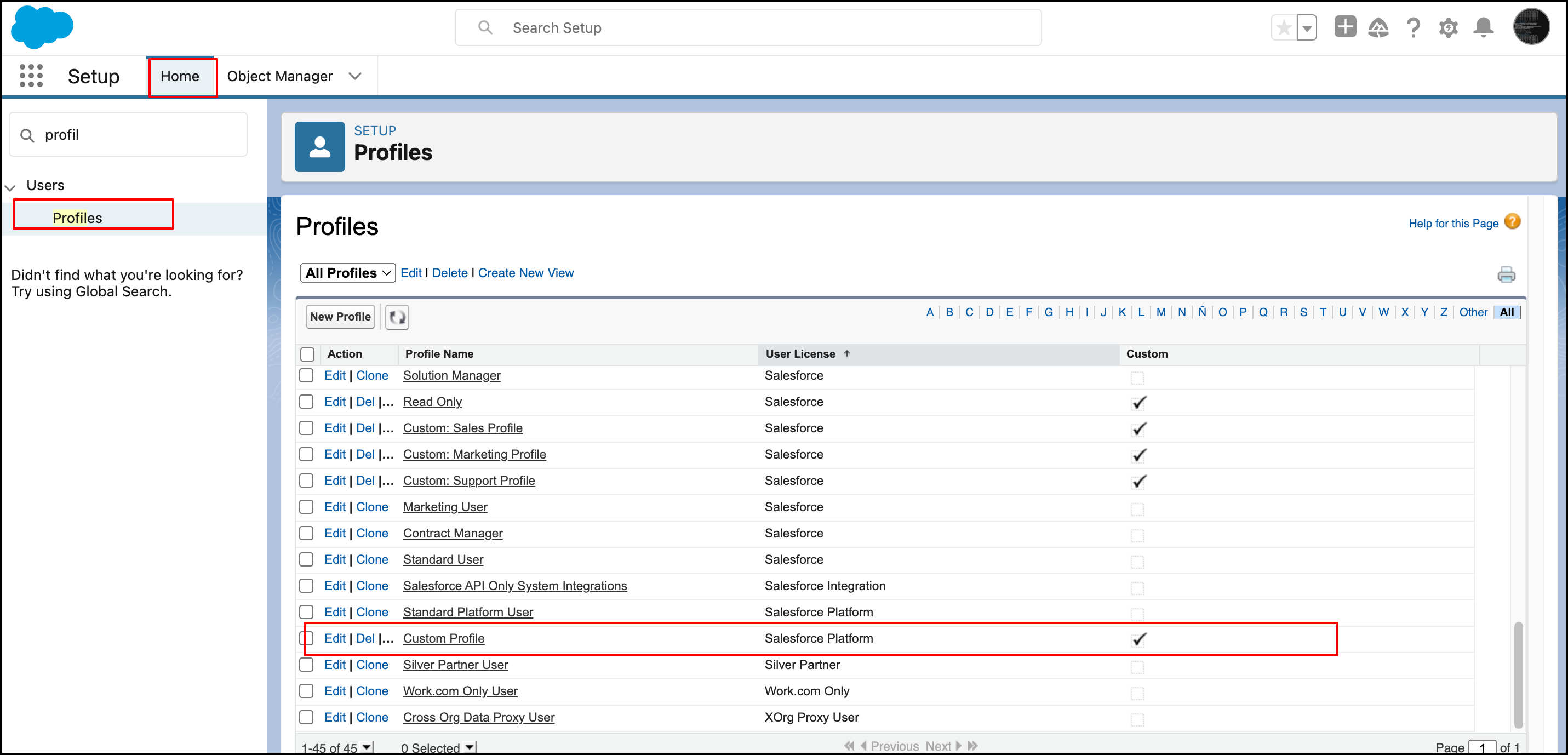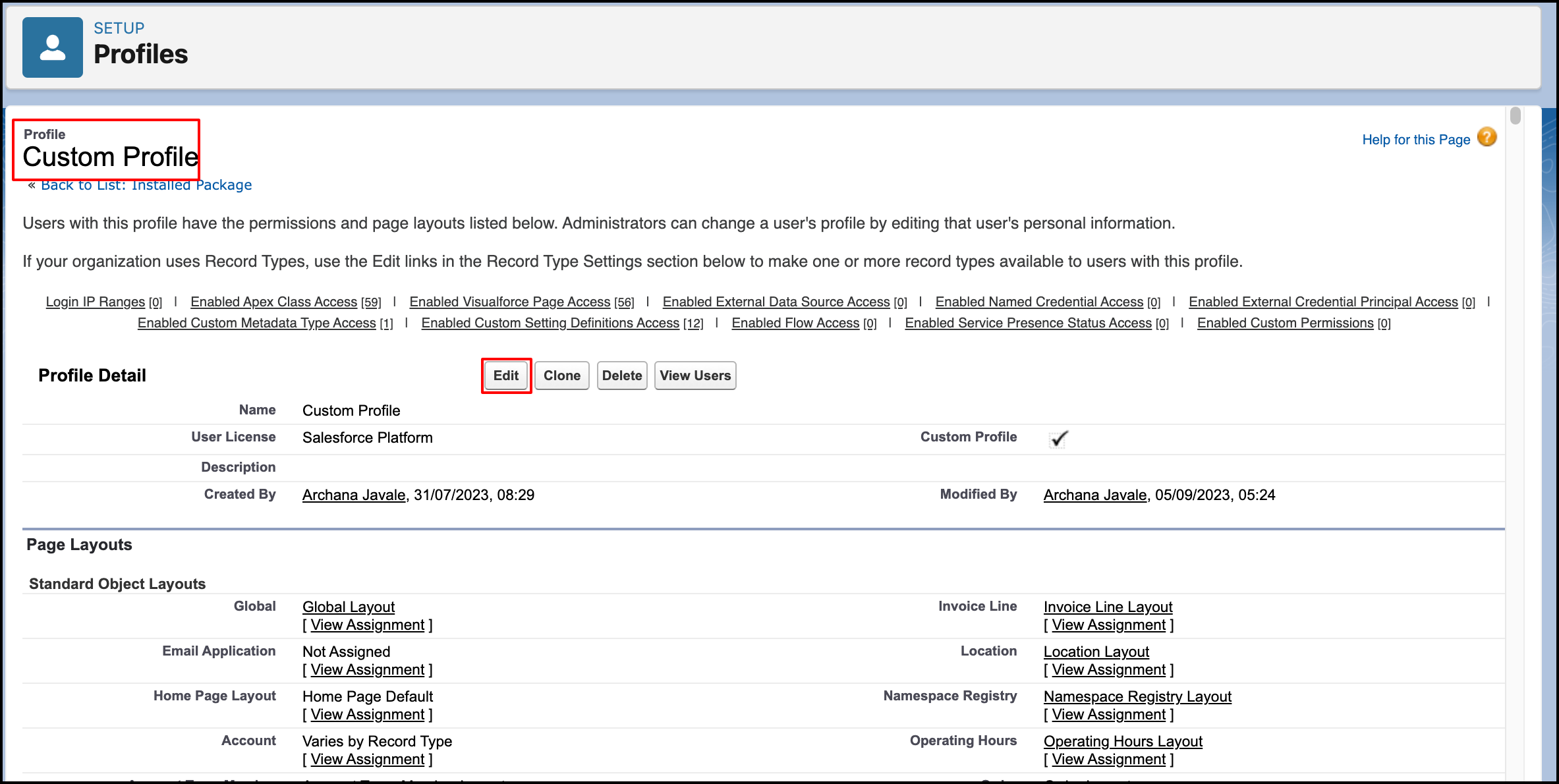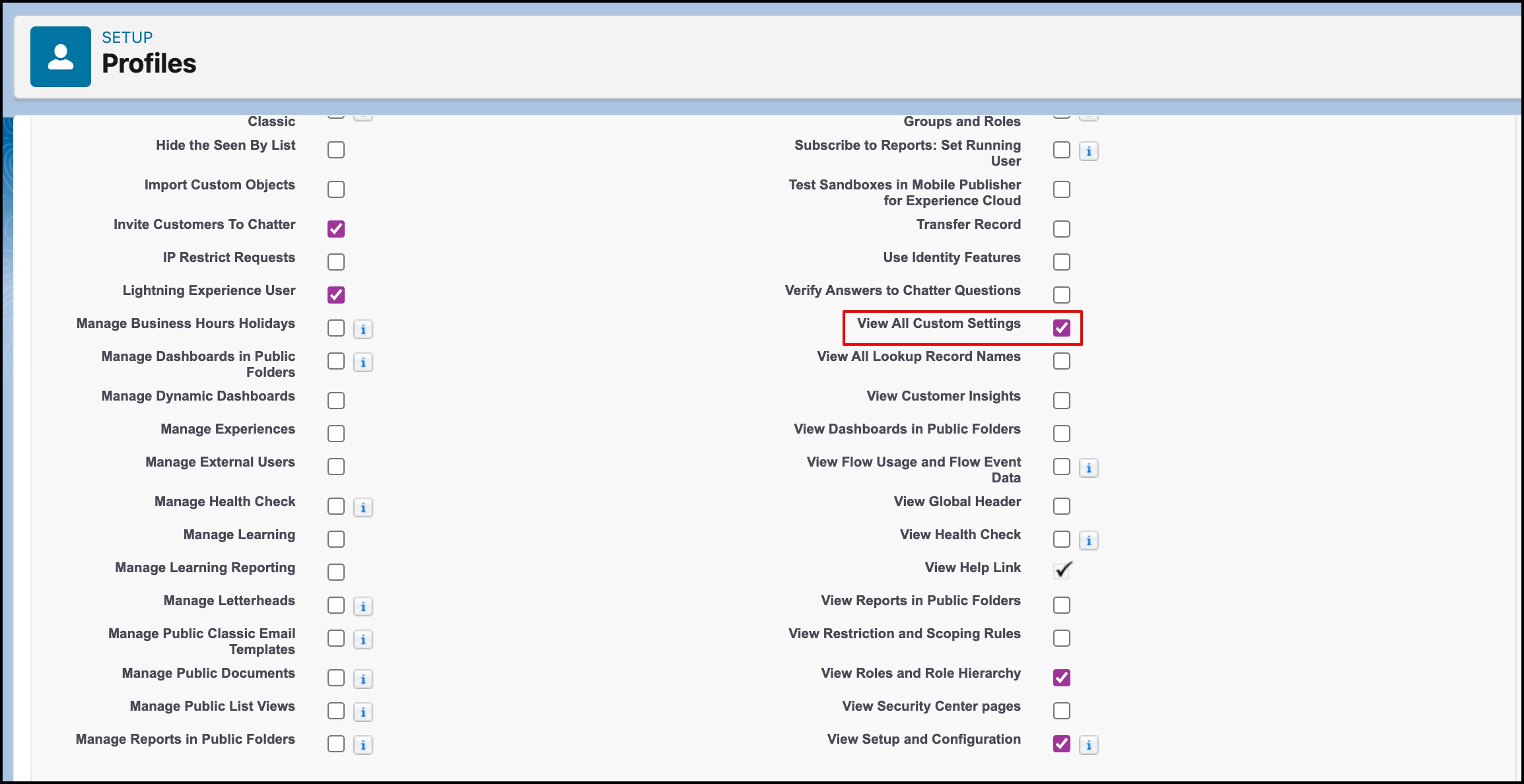 - In the profile editing page, search for "View All Custom Settings" and check the corresponding checkbox.