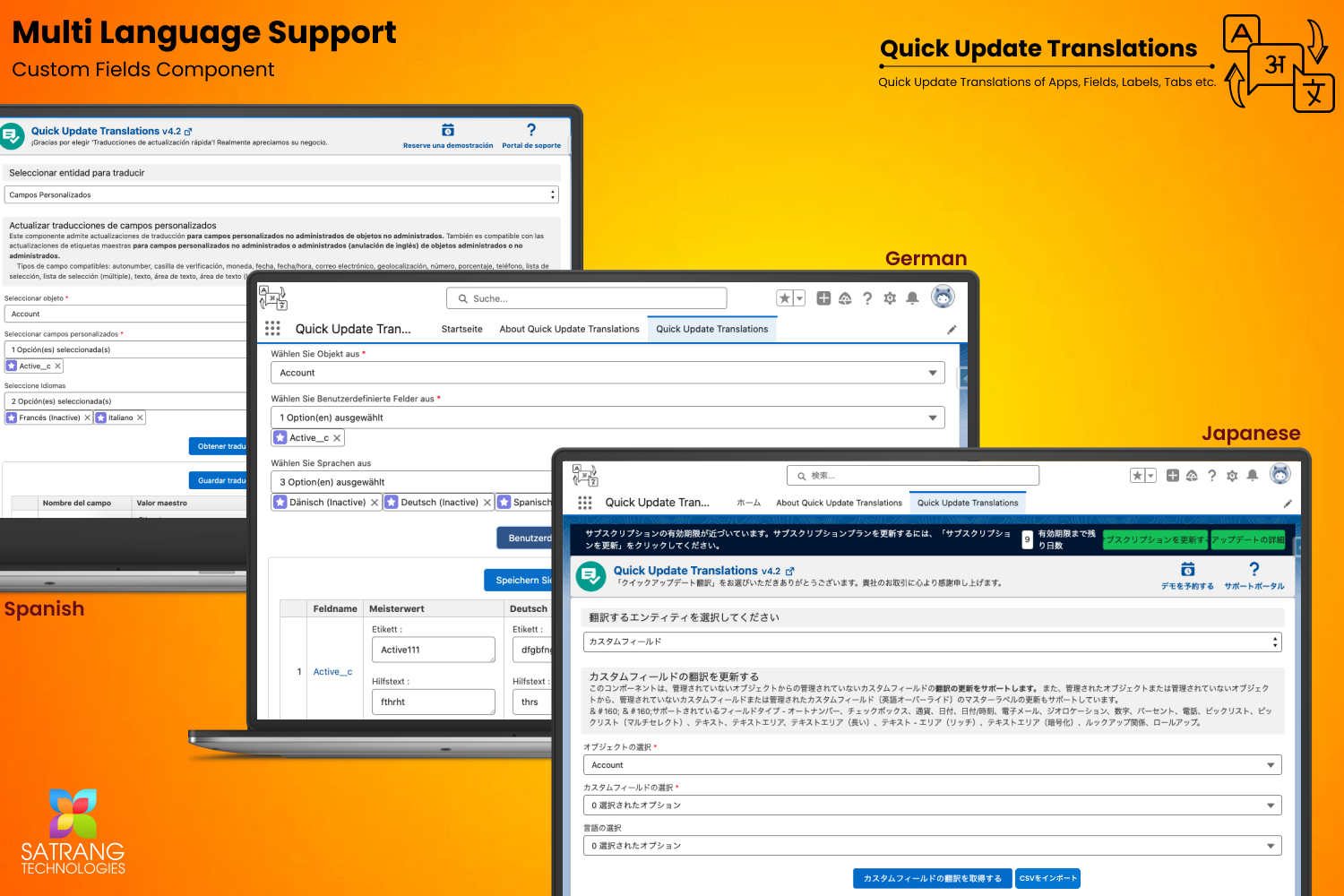 Quick Update Translations App supporting below 17 languages and Default English