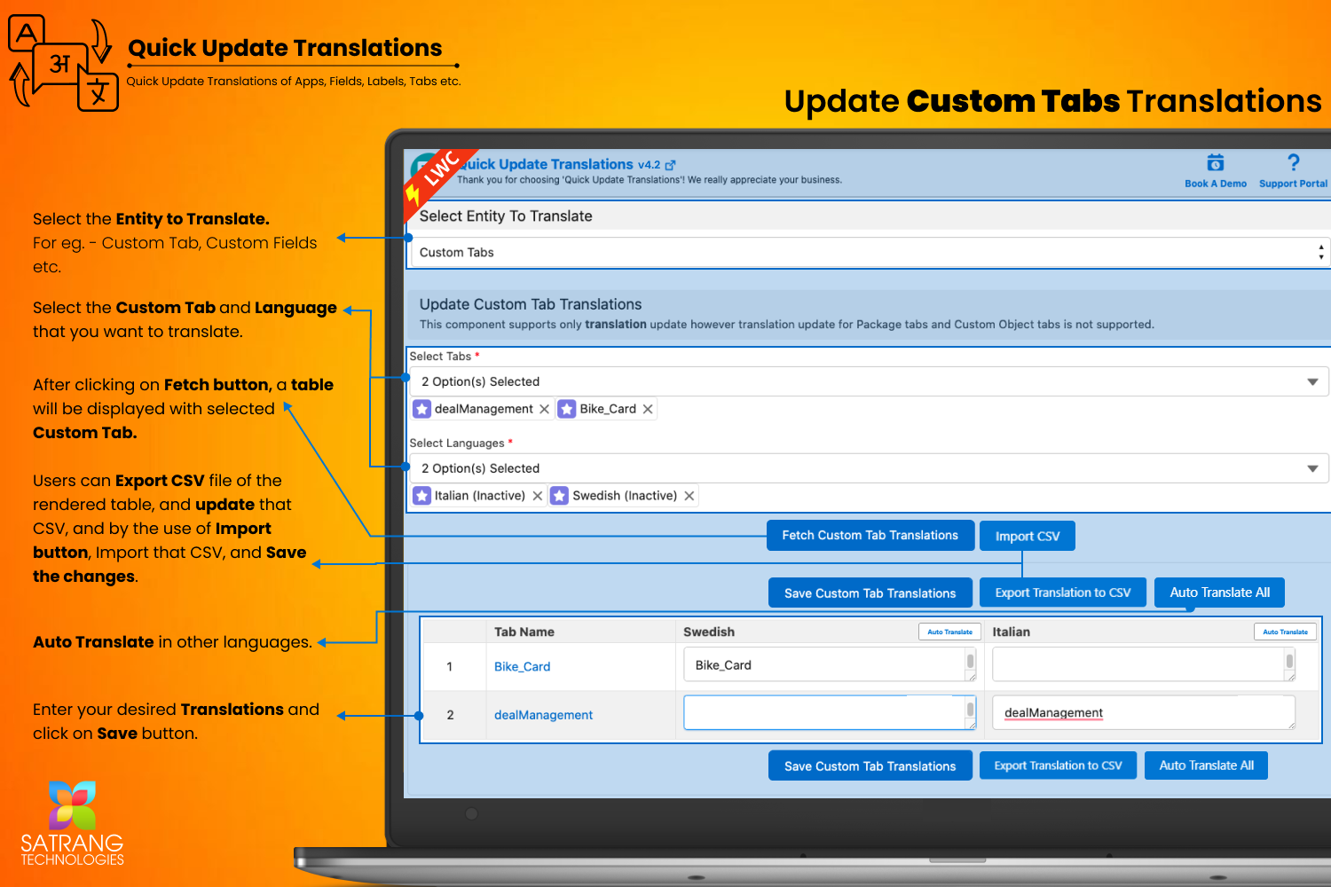 - In the "Select Tabs" section, pick the tabs for which you want to update their translations.