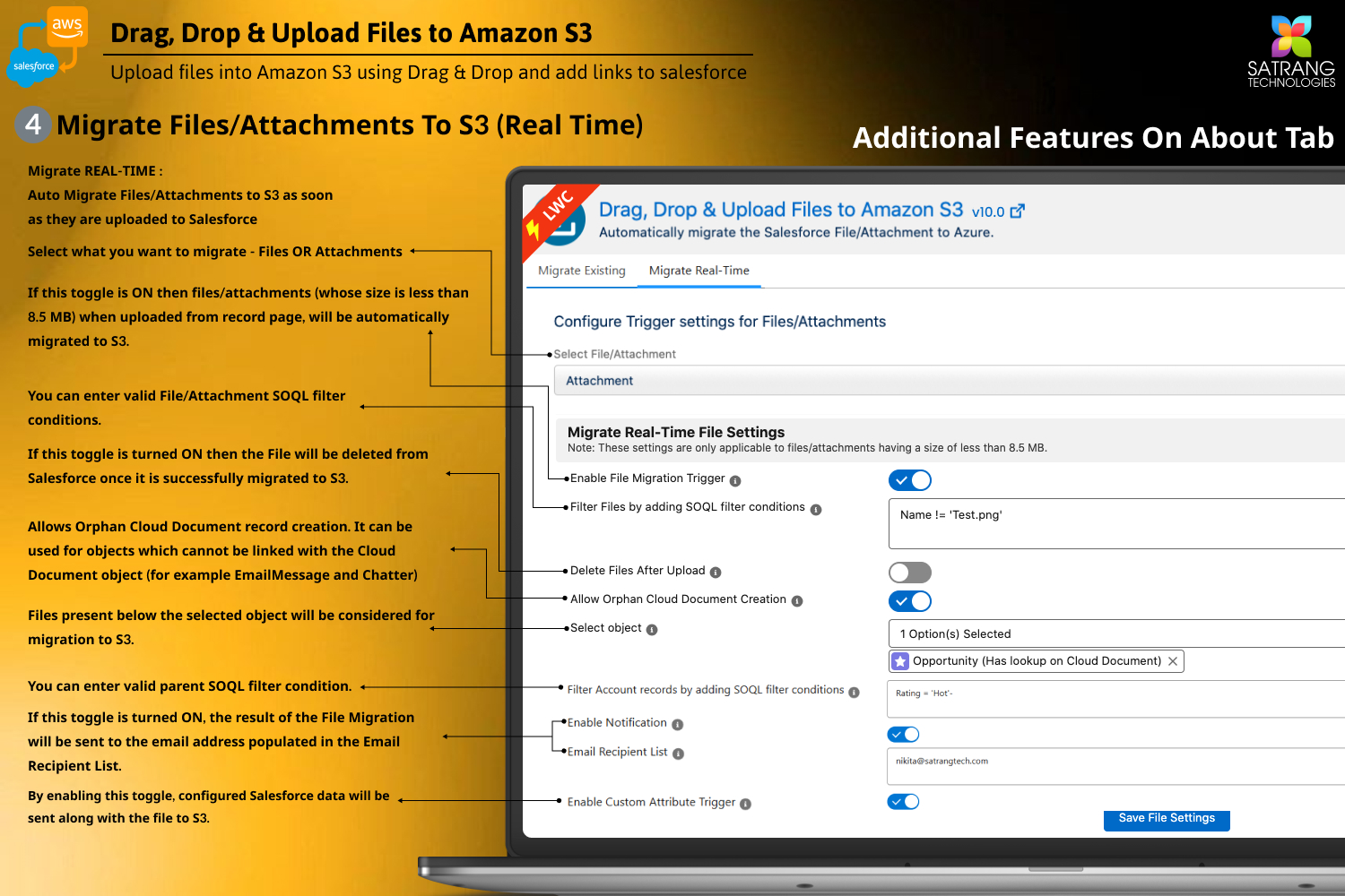 - Delete Files After Upload - Turn this toggle on when you want to delete the file from Salesforce after migrating it to S3.