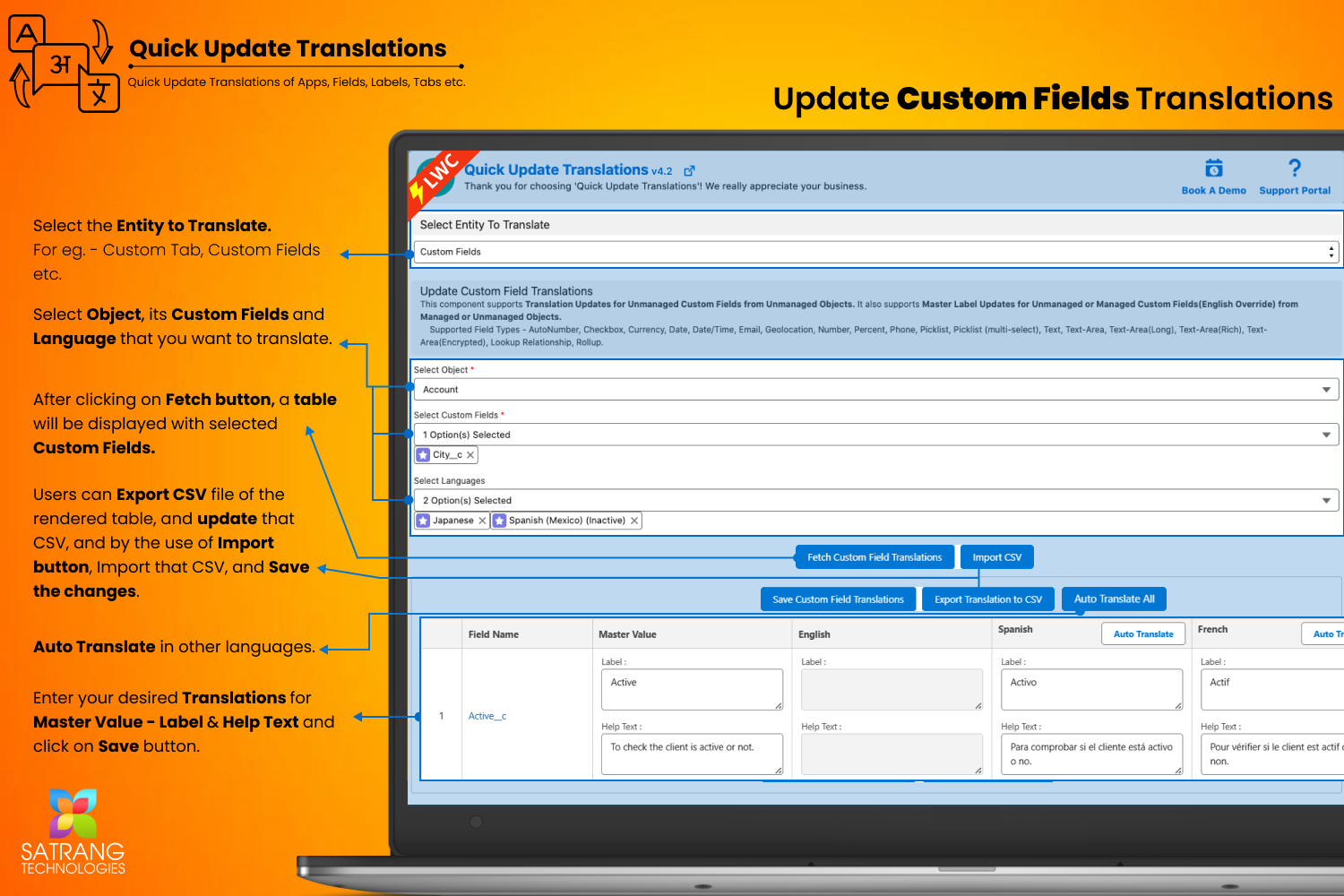 - In the "Select Custom Fields" dropdown, select the specific managed custom fields for which you want to update the translations.