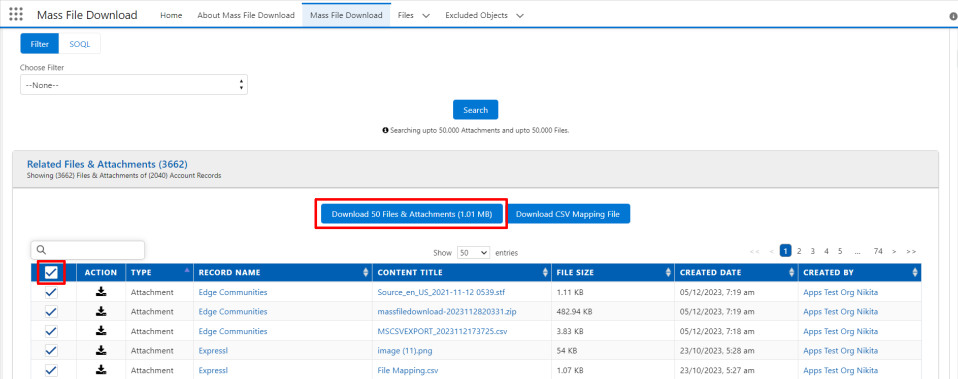 Now, take the following steps to Download Files/Attachments from the "Mass File Download" App: