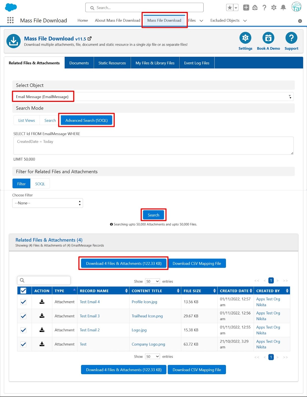 - Open the Mass file Download App and go to the Mass file Download Tab