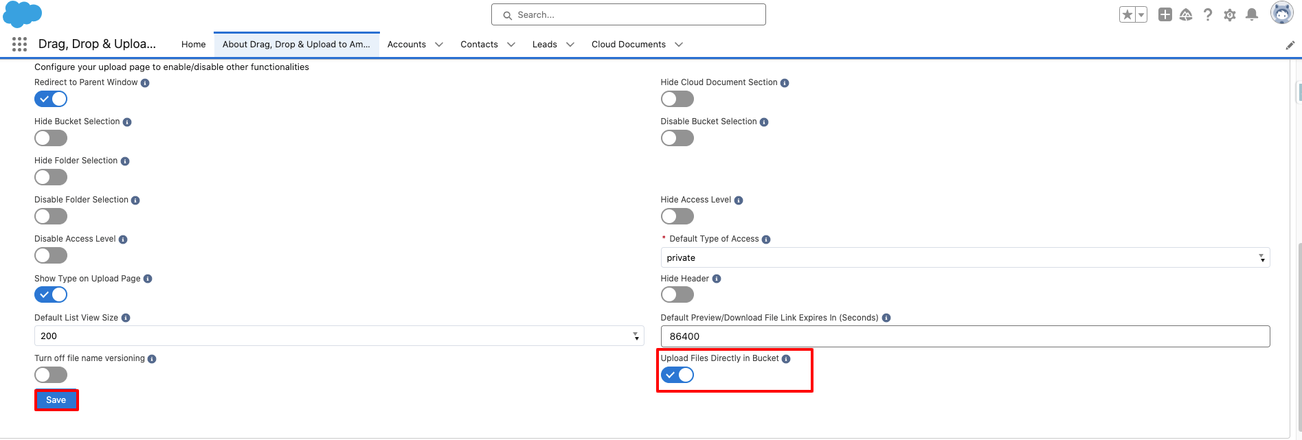 - In Step 6, enable the "Upload Files Directly to Bucket" toggle.