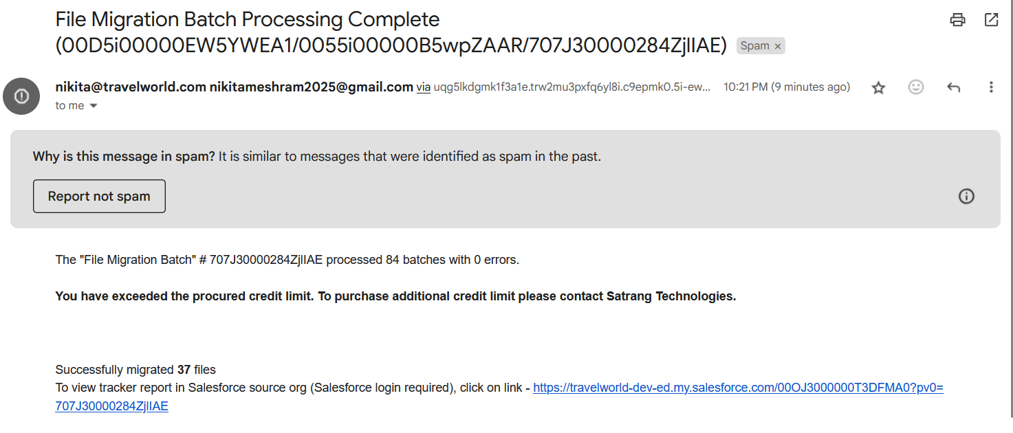 "You have exceeded the procured credit limit. To purchase additional credit limit, please contact Satrang Technologies."