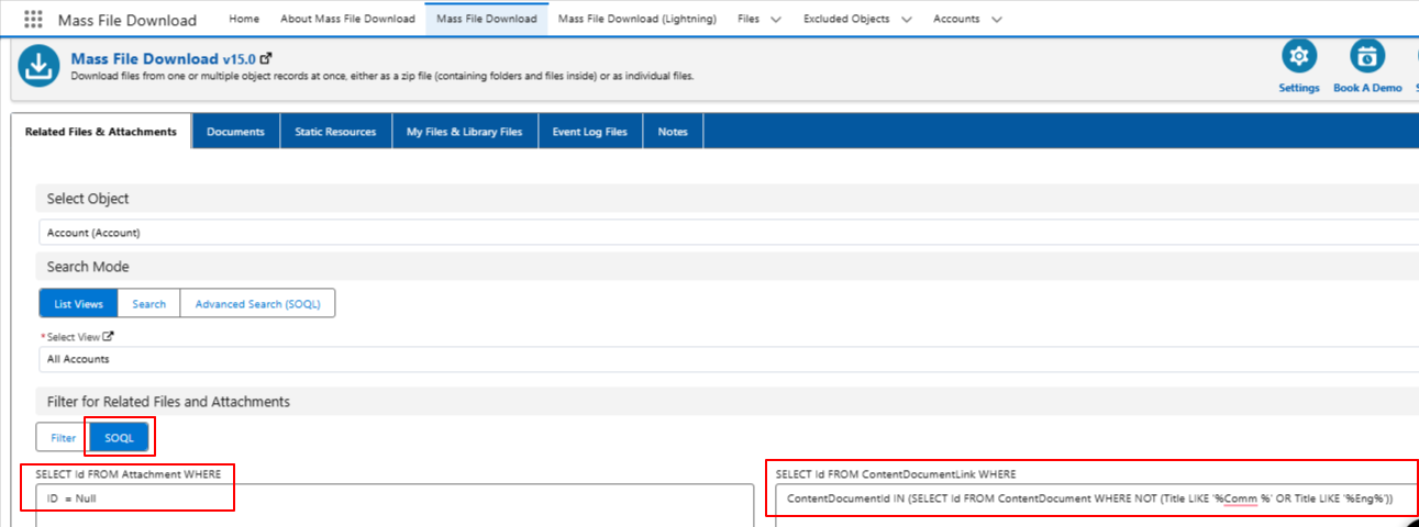 Note: If you want to exclude Attachments specifically, set ID = Null In the first search box when running the query.