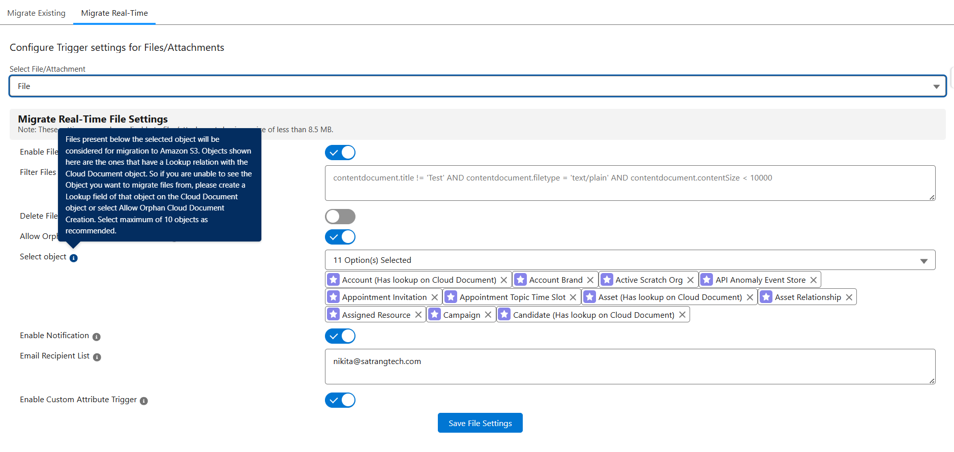 The Migrate Real-Time screen allows selecting multiple objects, but there is a character limit on the field.