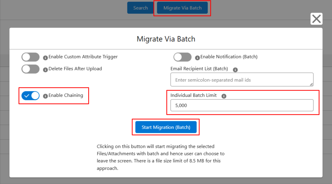 Enable Chaining makes large migrations more stable by: