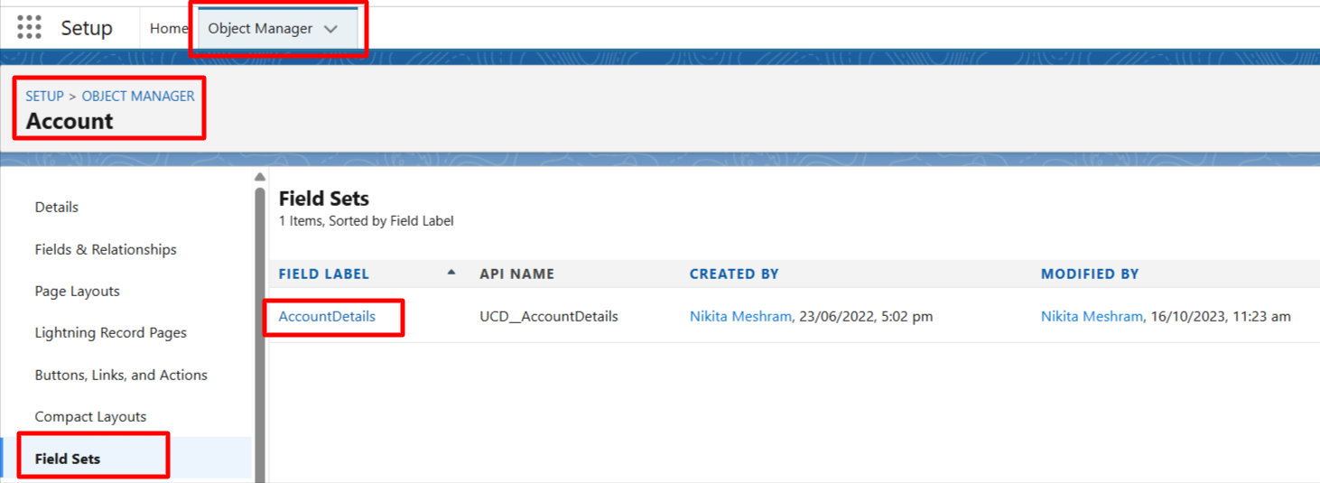 - Arrange the fields in the required sequence within the Field Set.