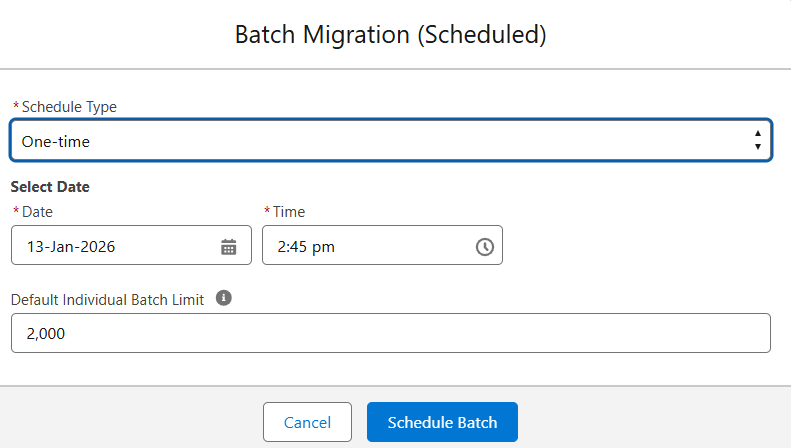 This option allows you to fully customize the migration schedule using a cron expression. You can choose any day, time, or recurring interval based on your specific scheduling needs.